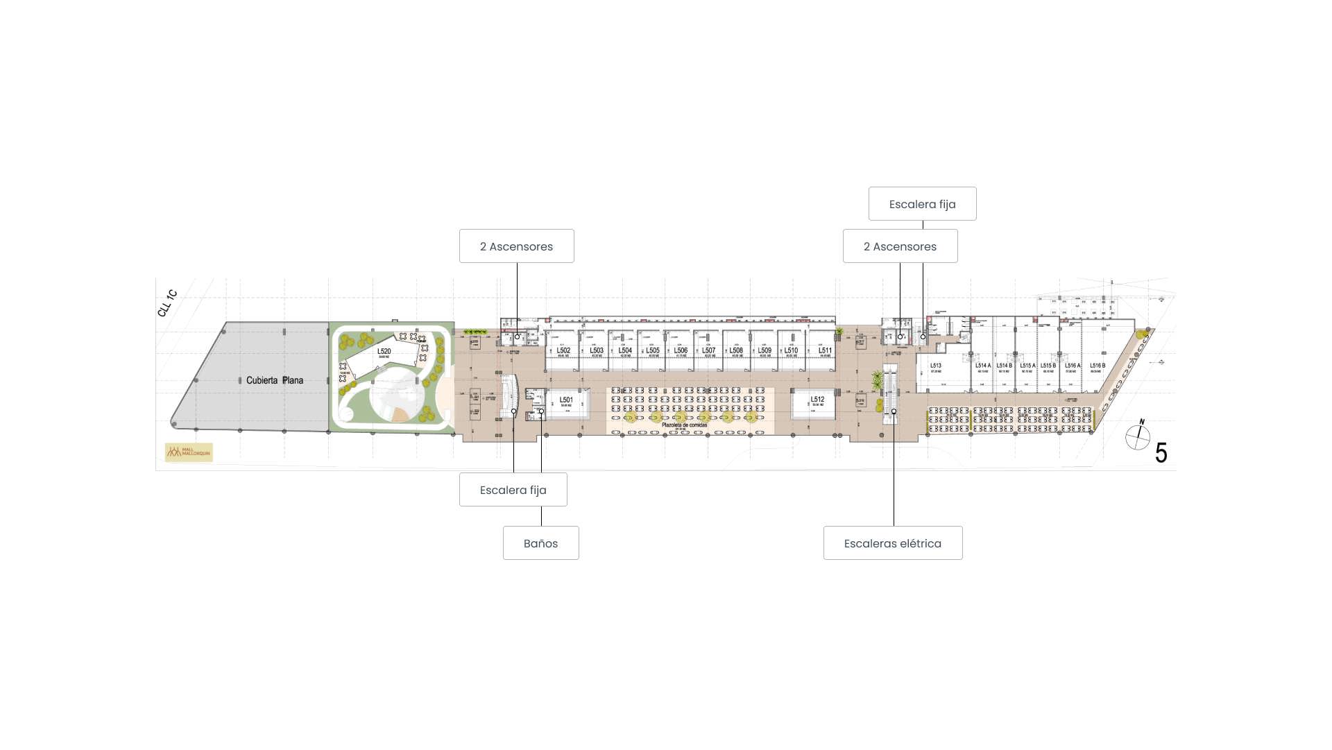 Accesibles en todo el centro comercial